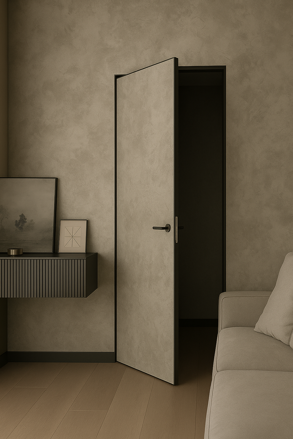 • Дверь в одну линию со стеной