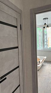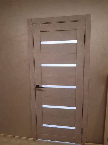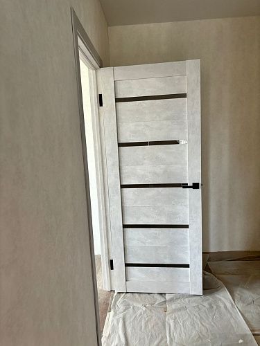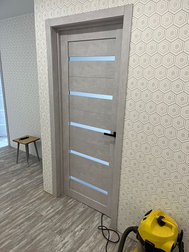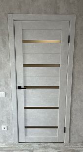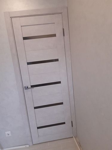 Дверь ПО Relief 1 Бетон лайт стекло графит из Экошпона COVERFLEX (Двери Нева) в с установкой и доставкой